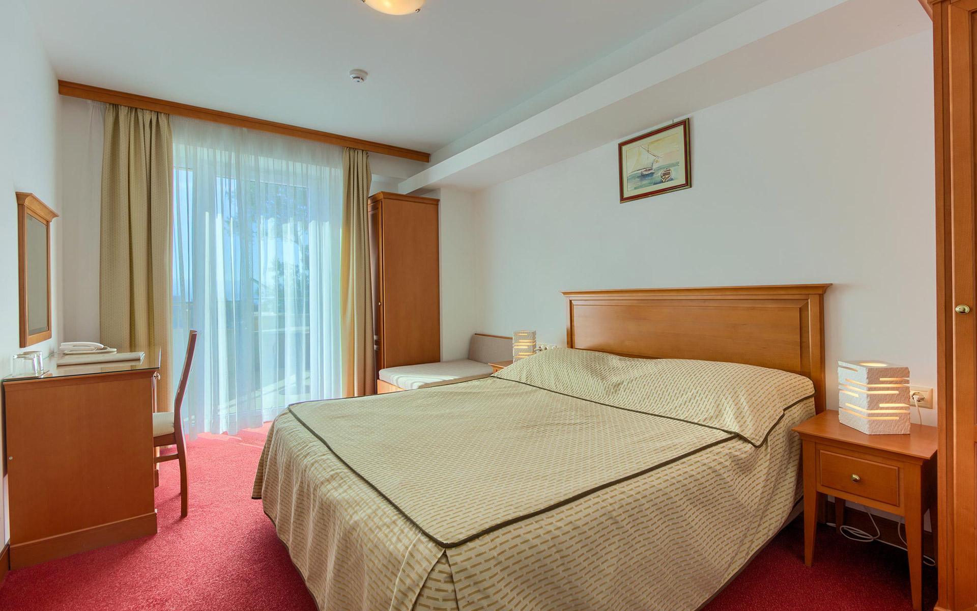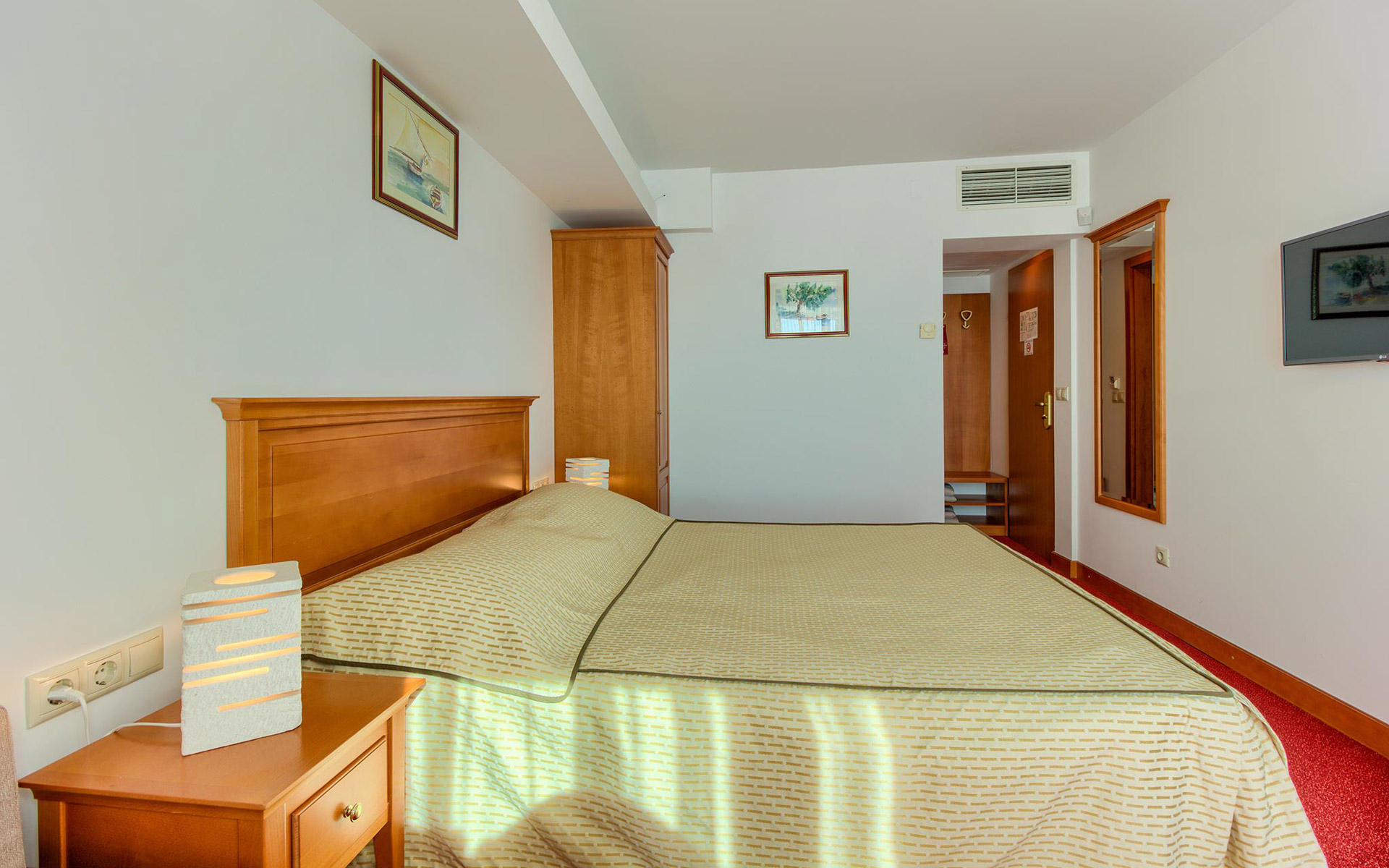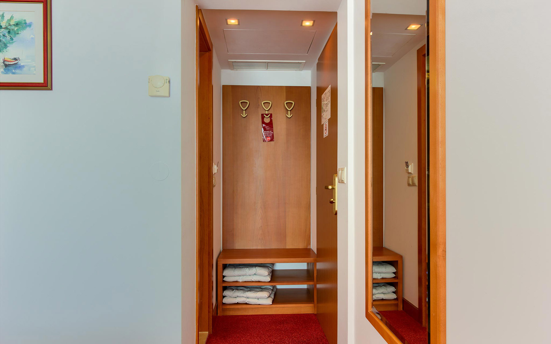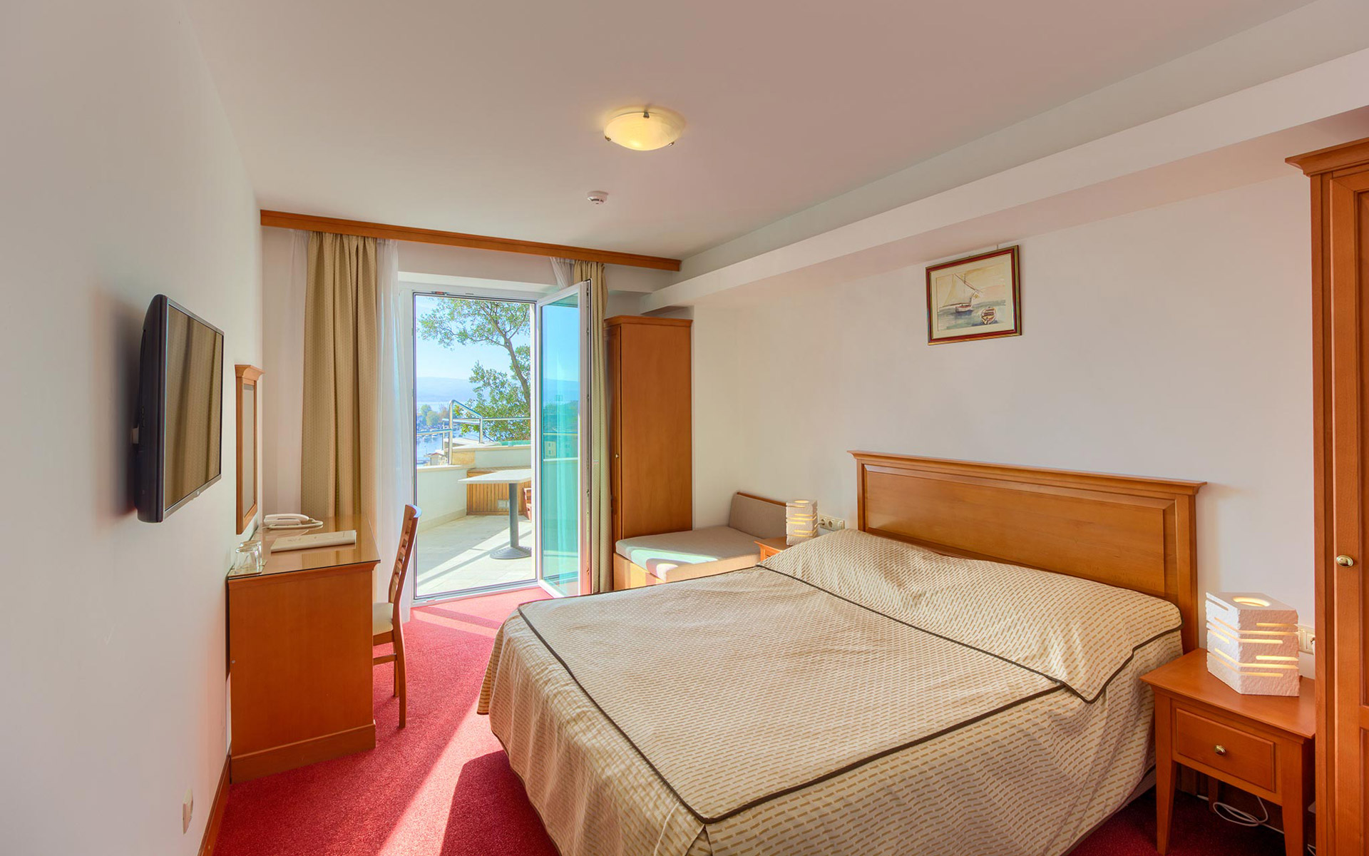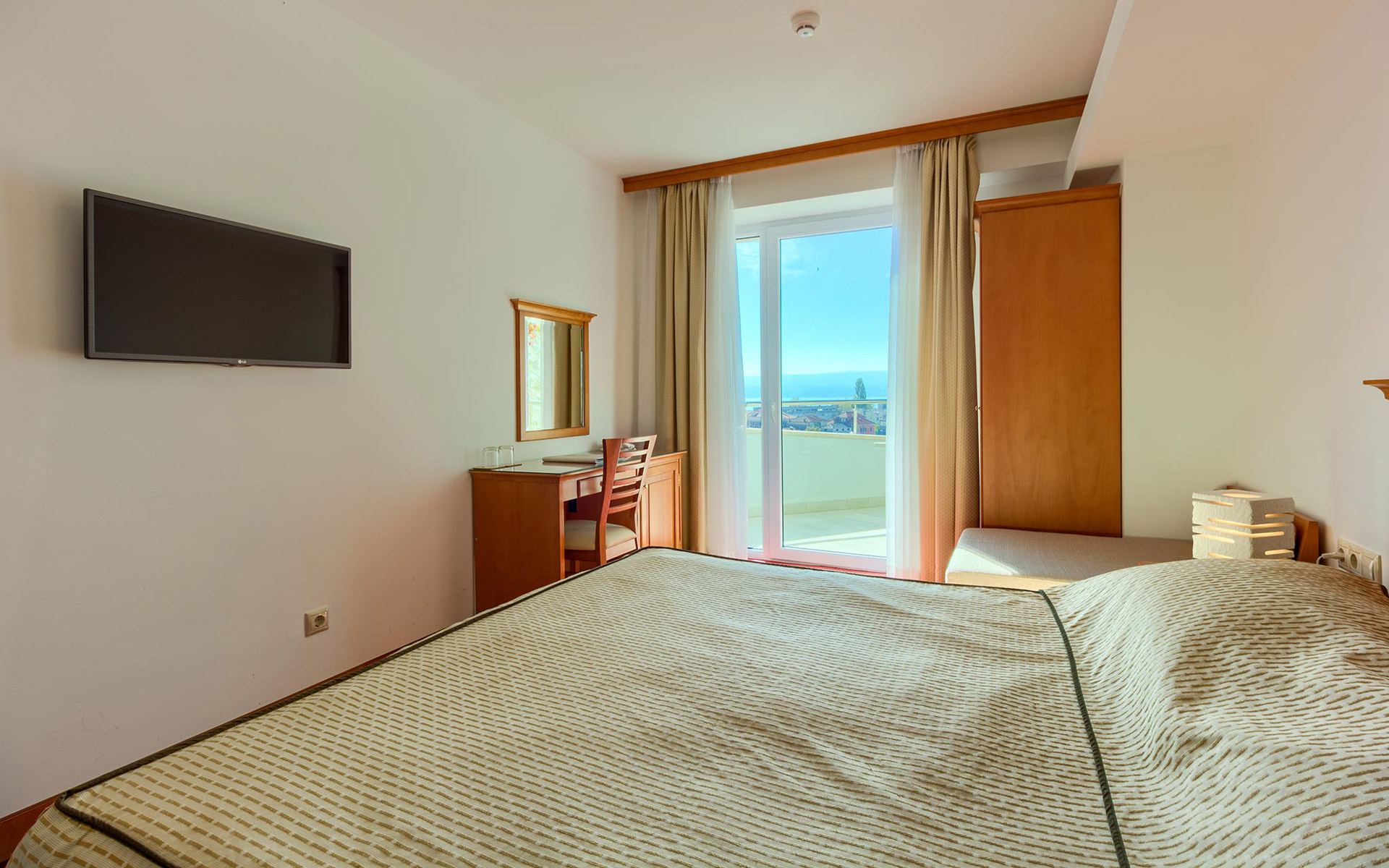 Cette chambre dispose d’un balcon de 10 m² avec une piscine privée (Plunge Pool). Profitez de moments inoubliables et romantiques depuis le confort de votre Plunge Pool, avec une vue spectaculaire sur l’estuaire de la rivière Cetina, la vieille ville d’Omiš et la forteresse Mirabela, la mer Adriatique, l’île de Brač, ainsi que sur les montagnes environnantes.