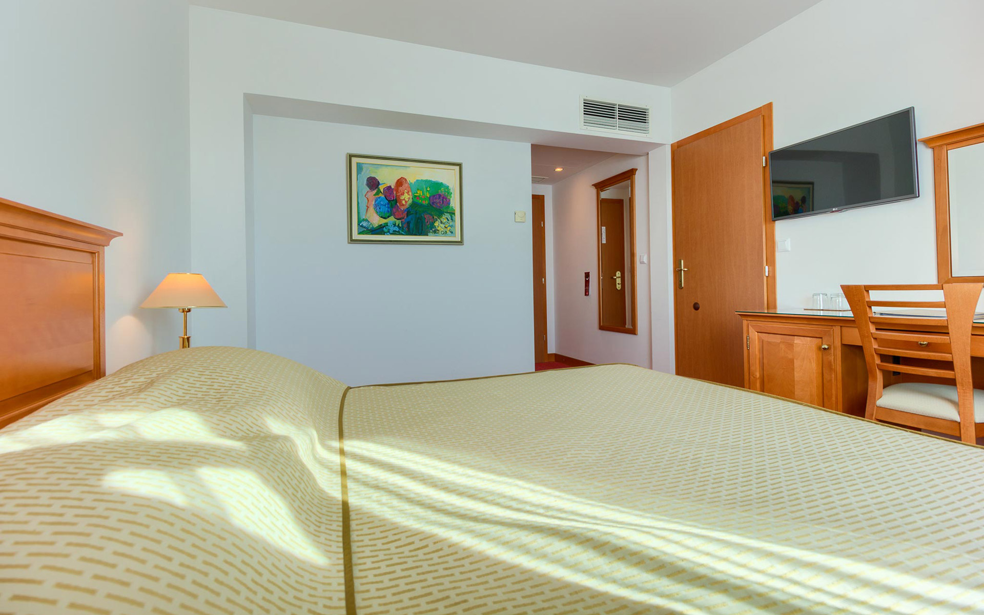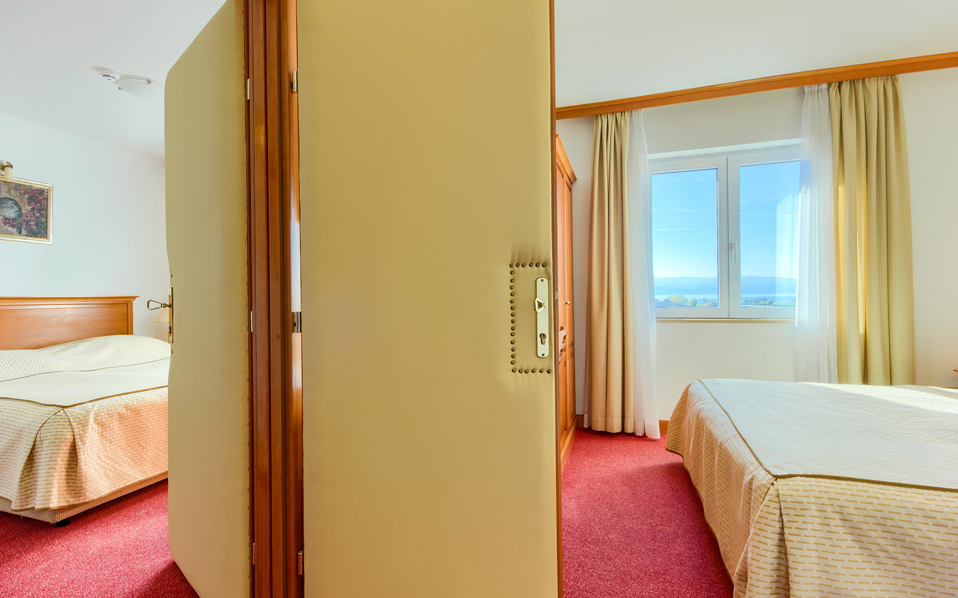 Provedite svoj odmor u jednoj od naših obiteljskih soba koje Vam pružaju sve pogodnosti za nezaboravan odmor obitelji sa djecom. Dvije odvojene Dvokrevetne sobe s pogledom na more, povezane međusobno vratima uz nezaboravan pogled iz vase sobe na ušće rijeke Cetine, stari grad Omiš I tvrđavu Mirabelu, Jadransko more i otok Brač, kao I na okolne planine Imber I Dinaru, garancija su nezaboravnog provoda.
